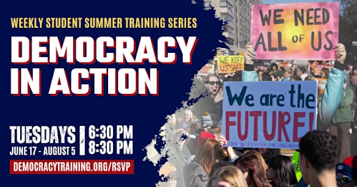 | | | Democracy Summer: Weekly Student Summer Training Series Hosted by Public Citizen, in partnership with UUSJ August 5 6:30 p.m. ET • 5:30 p.m. CT • 4:30 p.m. MT • 3:30 p.m. PT RSVP for full details Strategic Escalation is the next topic. Emerging or Young Adults can still join the Student Summer Training Series to learn the skills they need to be effective mobilizers, organizers, and advocates. Joining the final summer sessions will get them connected for the fall. |