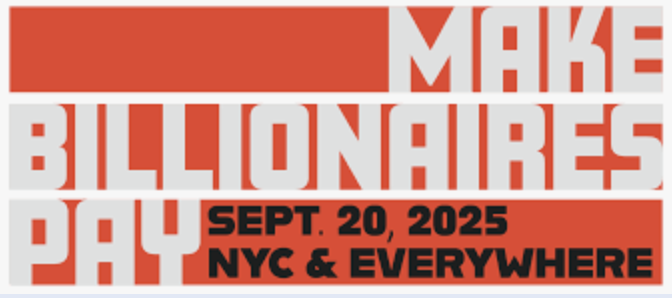 | Make Billionaires Pay, in NYC and Across the U.S. Hosted by 360.org, and others September 20 Find/Host an Event In September, world leaders will be gathering in New York City to review countries' climate plans (or "nationally determined contribution"). This remains a critical moment for us to demonstrate to the world that Americans are resisting Trump and the Billionaire Class. UUSJ joins the call for people across the U.S. to attend the Make Billionaires Pay mobilizations by hosting a march in their community or joining the march in New York City. Yes, this is a C3-compliant mobilization! |