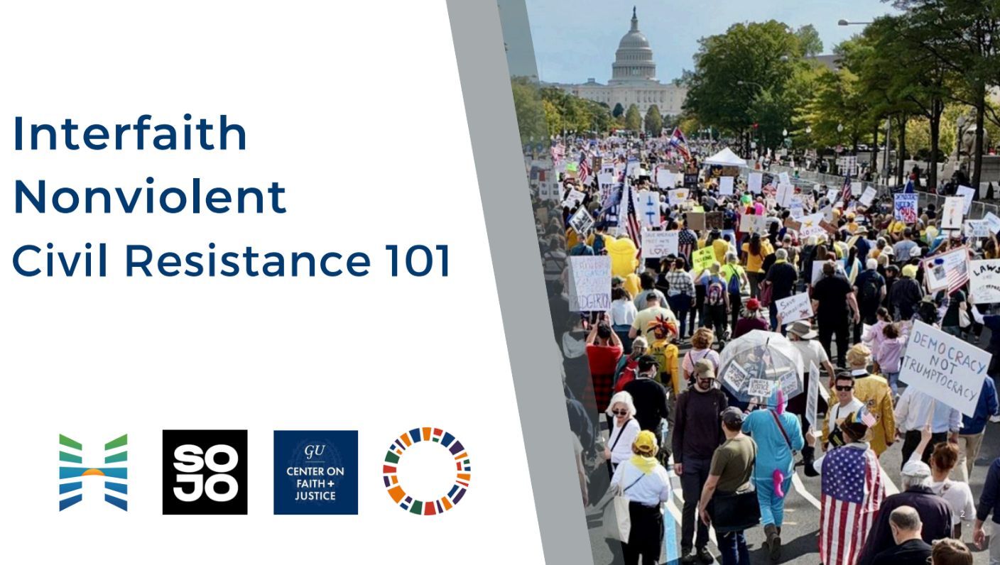 | | Interfaith Nonviolent Civil Resistance 101 On October 22, the Center on Faith and Justice, Sojourners, Interfaith Alliance, the Horizons Project, and UUSJ organized an excellent training session for Interfaith Nonviolent Civil Resistance 101 training, designed as a foundational session for faith leaders seeking to confront authoritarianism and defend democracy through the power of nonviolence. Here are some actions you can take starting now! |
